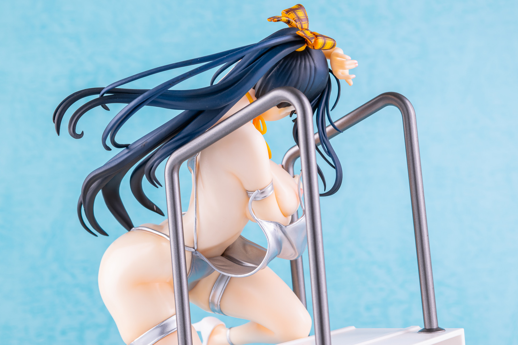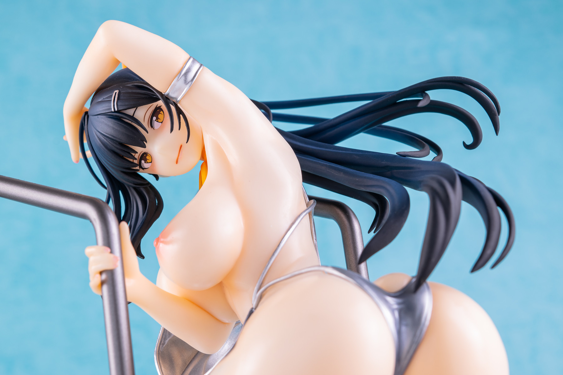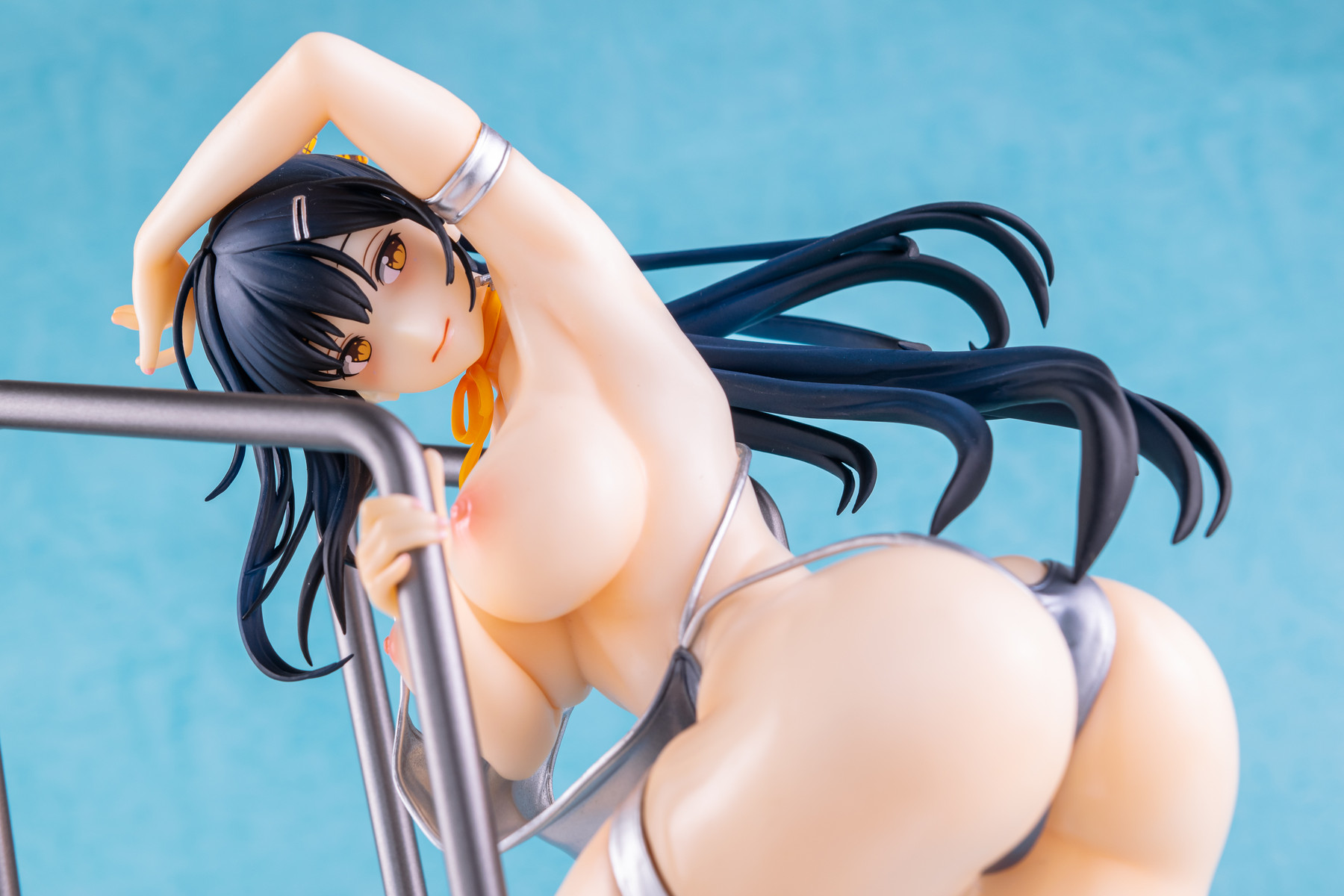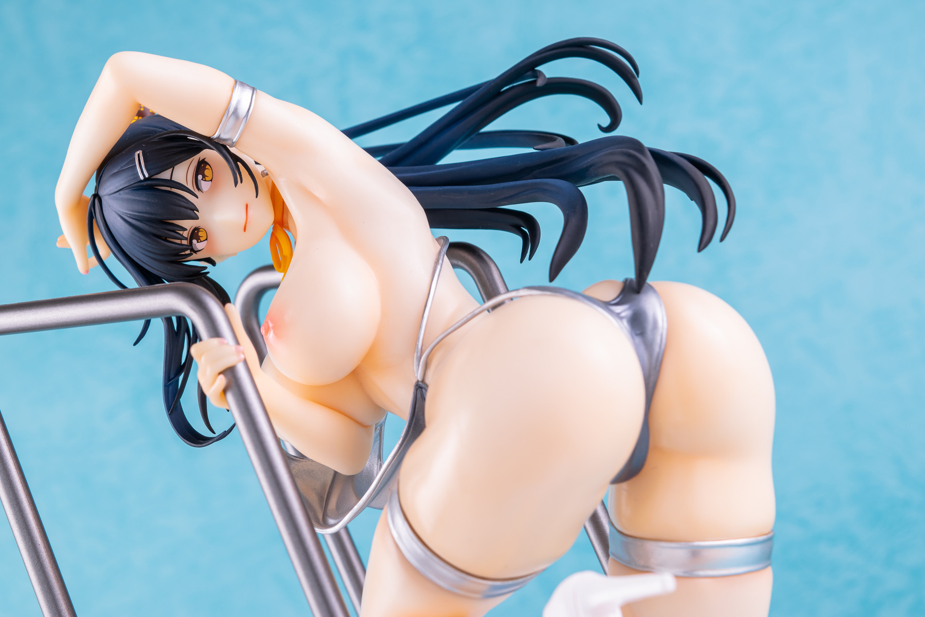 基イラストの水着が持つメタリックなシルバーはそのまま、宙を舞う肩紐の位置は横から見るとある種のチラリズムに満ちていますね。コレはヤバい…!