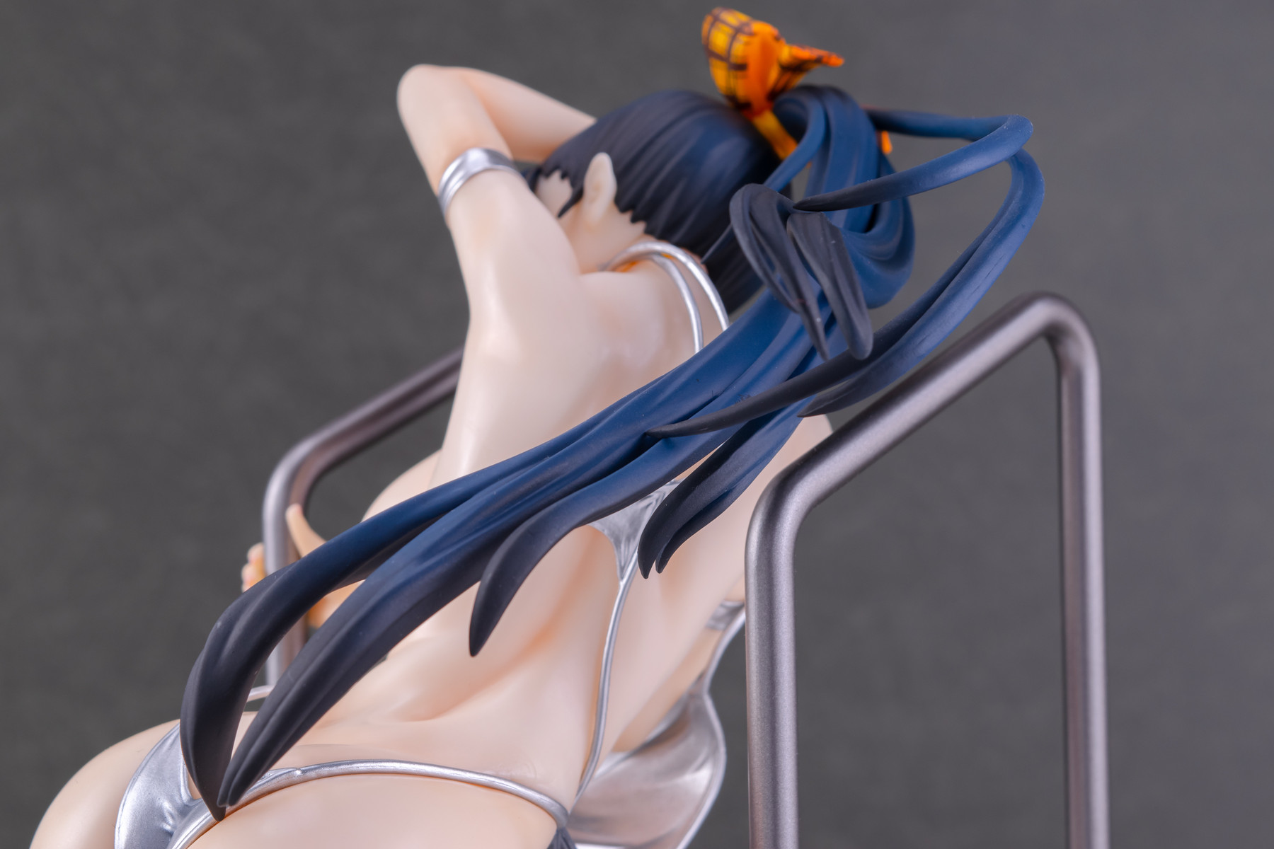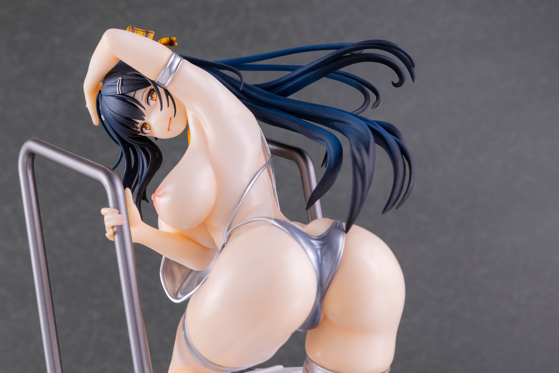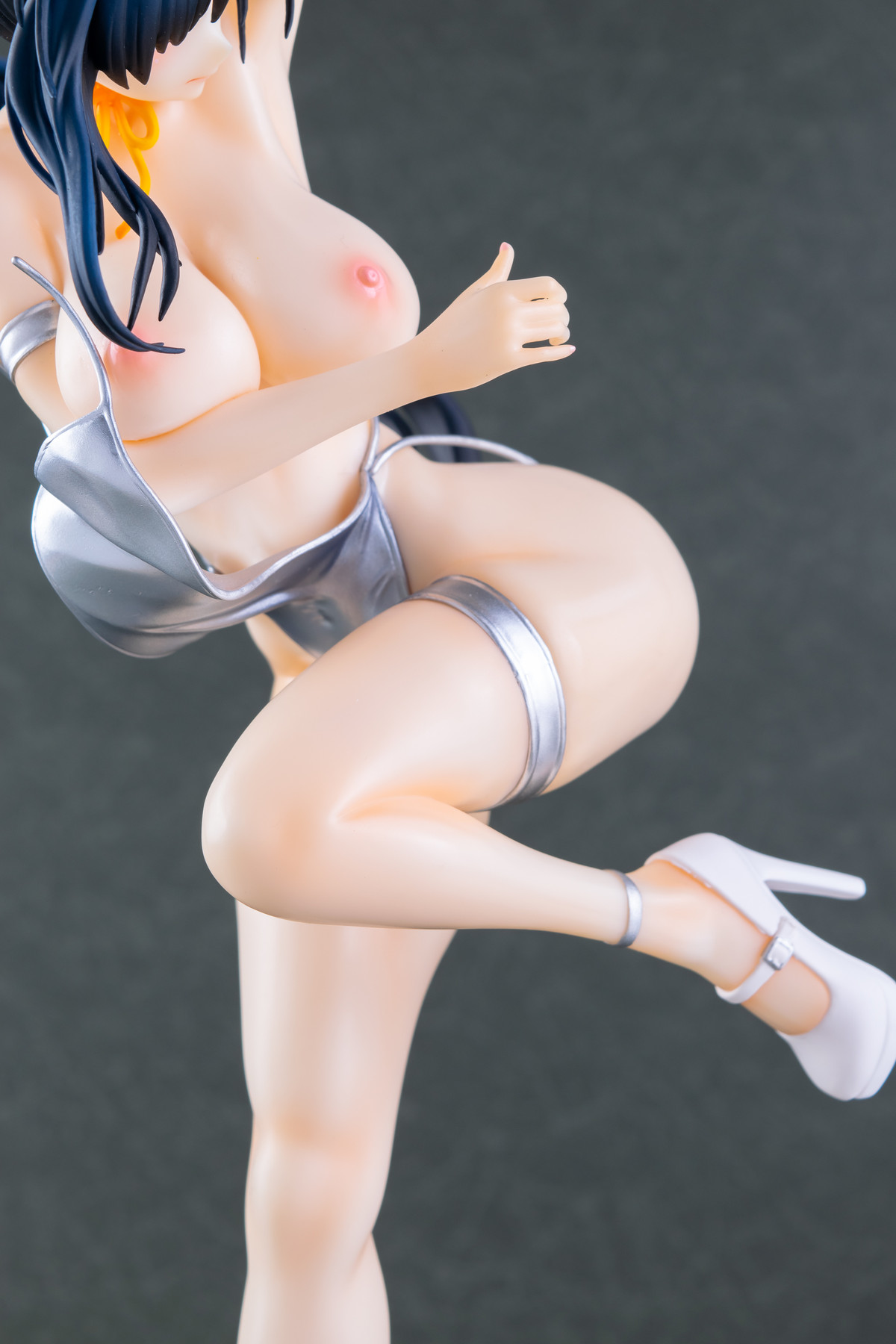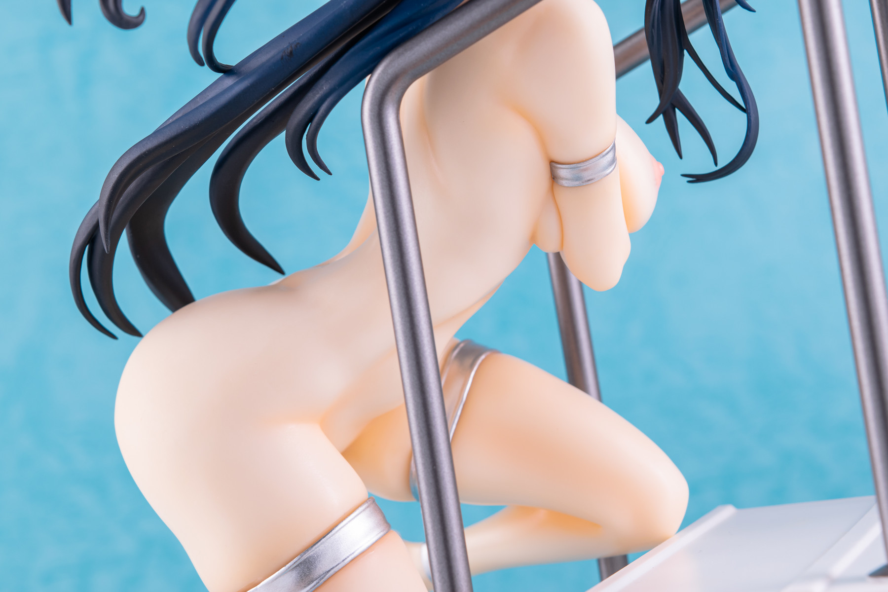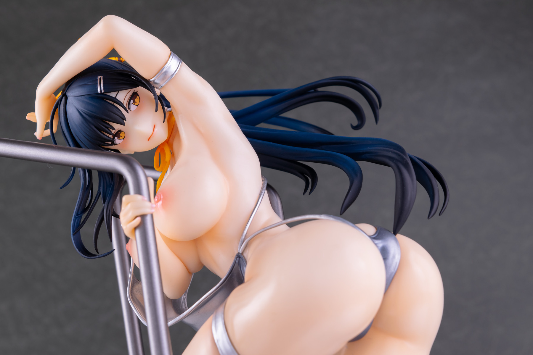 基イラストの水着が持つメタリックなシルバーはそのまま、宙を舞う肩紐の位置は横から見るとある種のチラリズムに満ちていますね。コレはヤバい…!