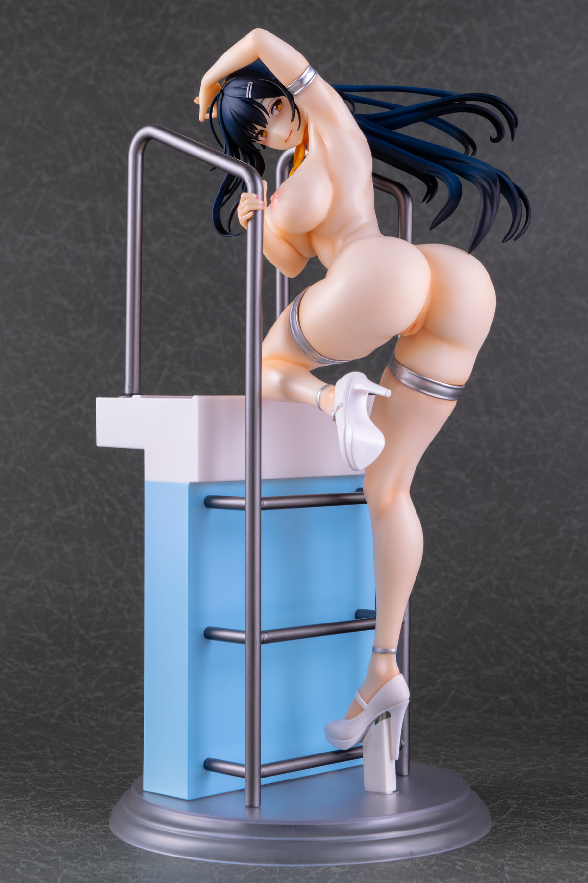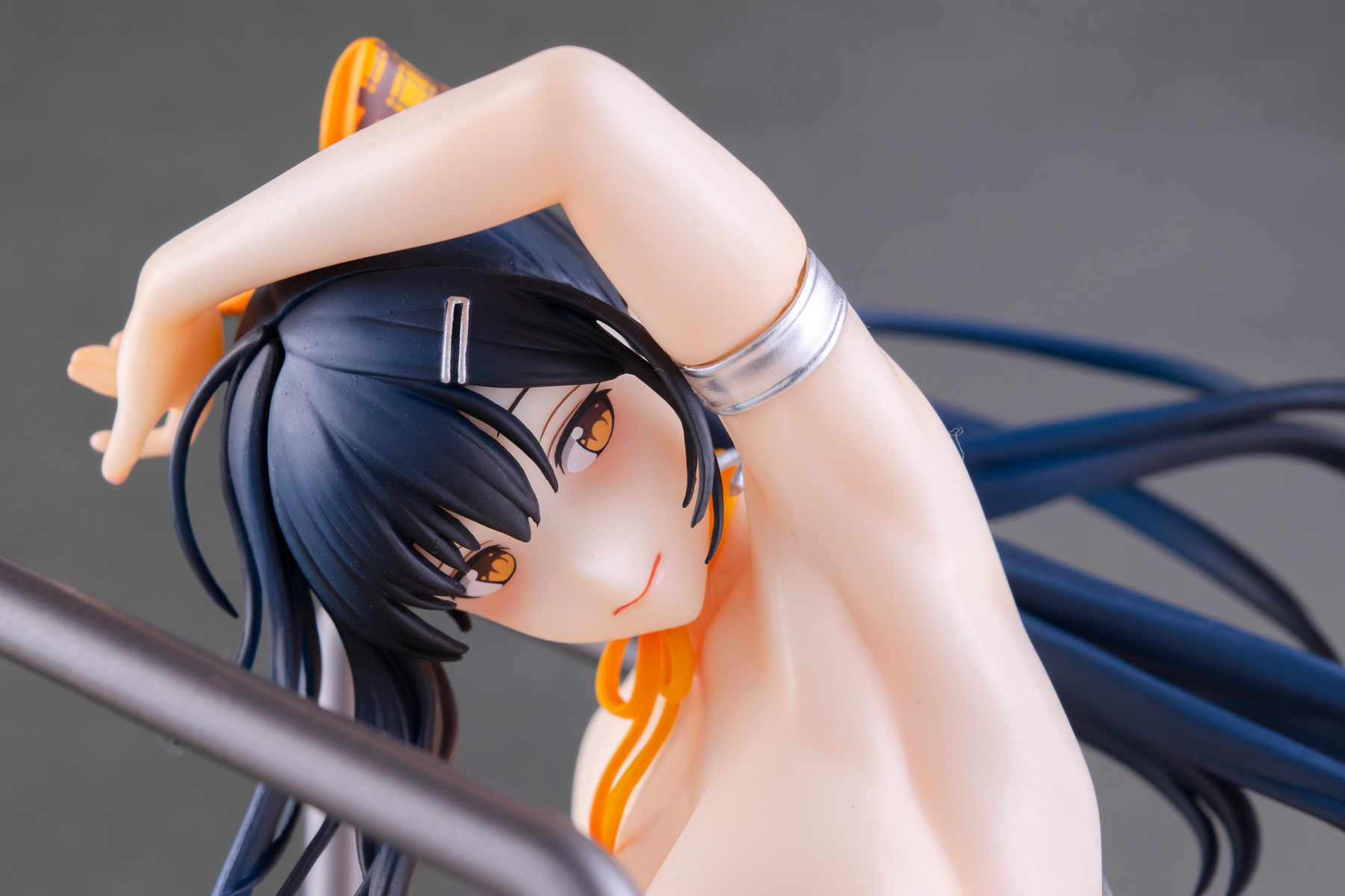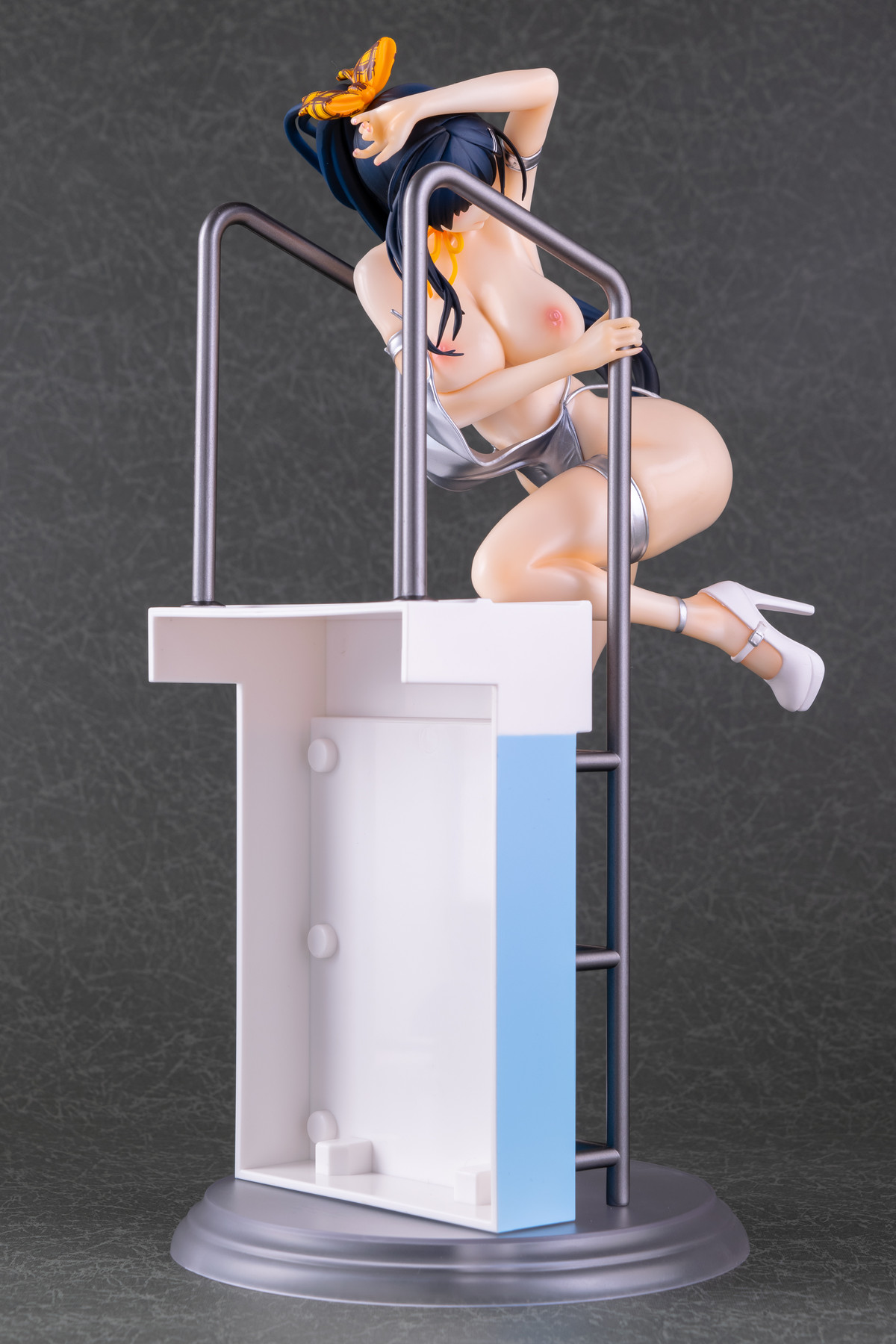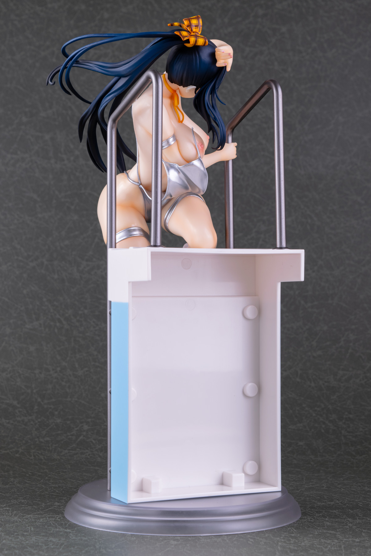 基イラストの水着が持つメタリックなシルバーはそのまま、宙を舞う肩紐の位置は横から見るとある種のチラリズムに満ちていますね。コレはヤバい…!
