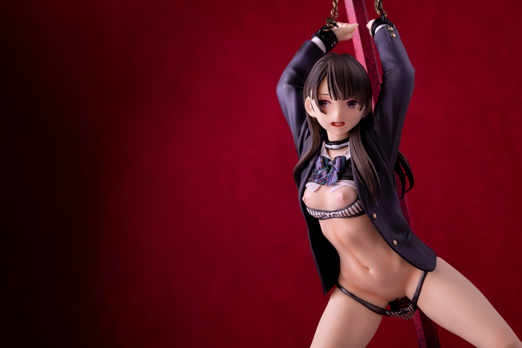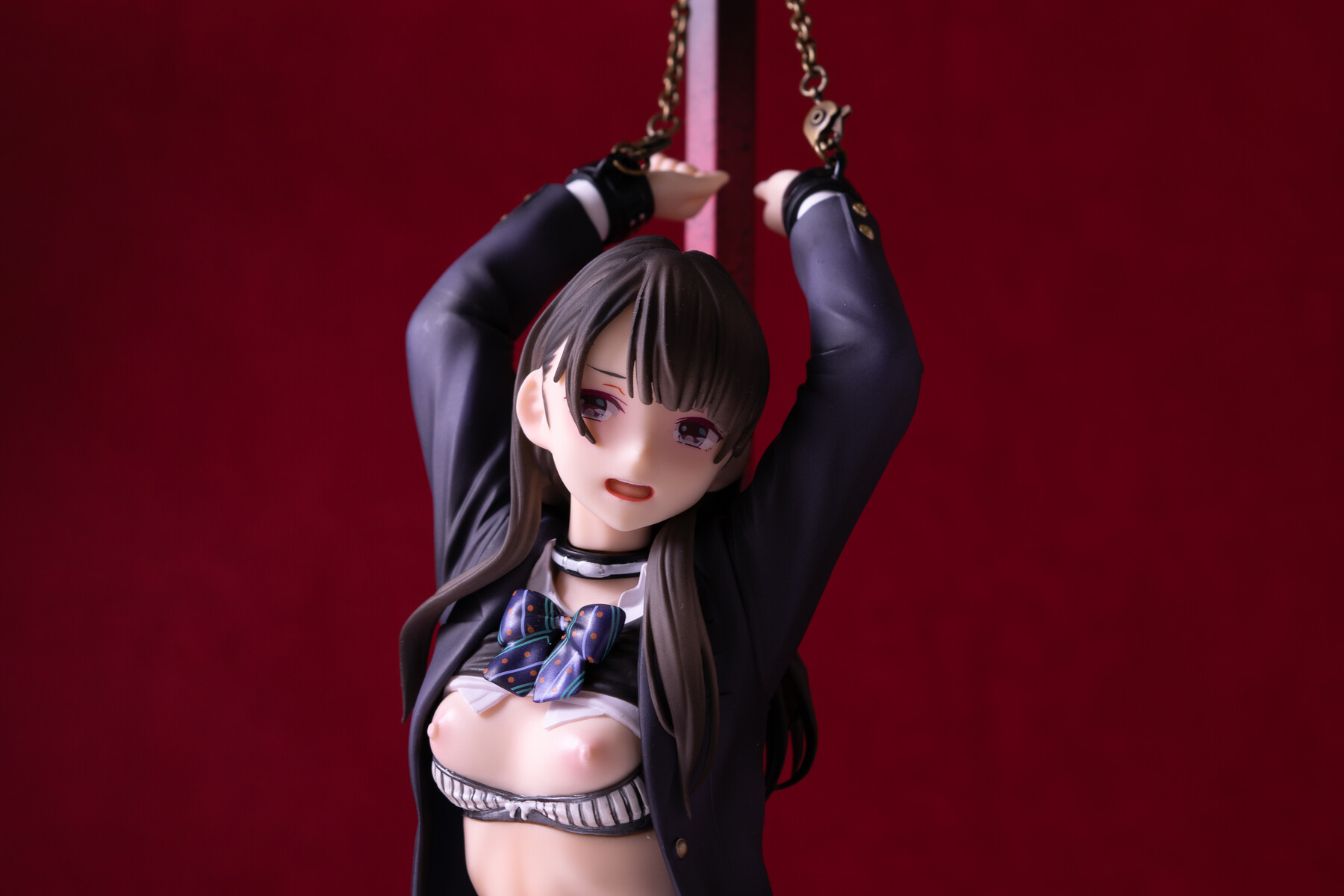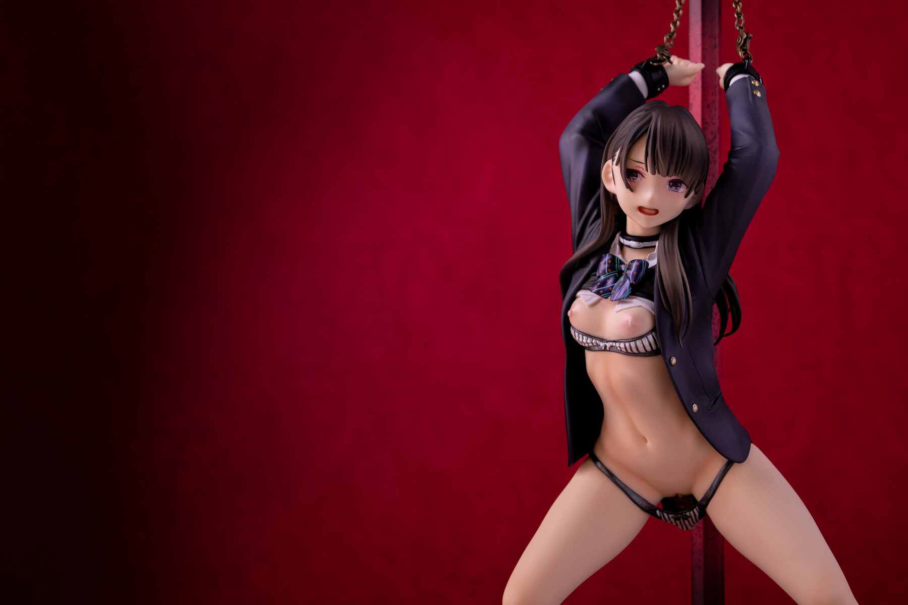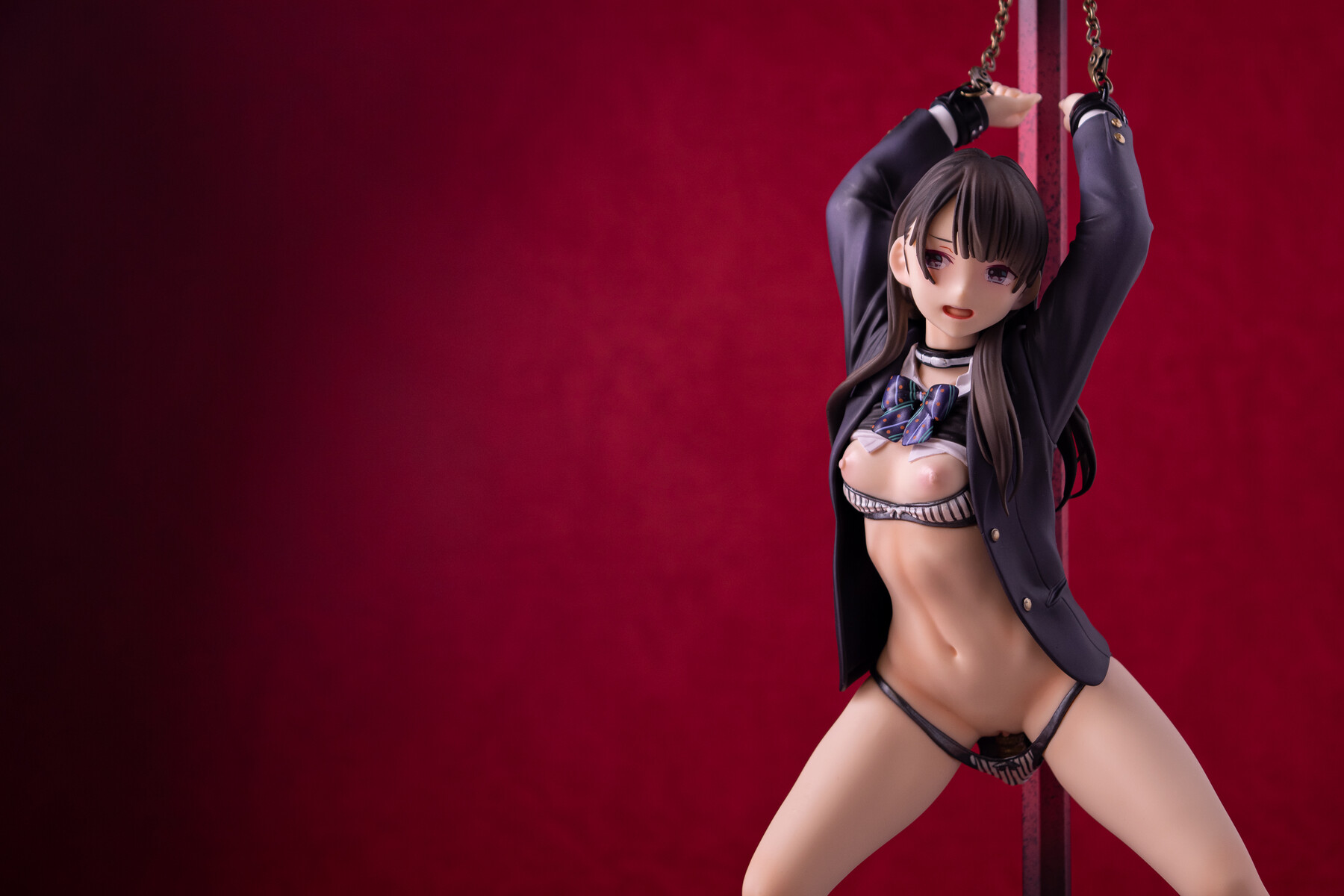 制服の少女が四肢を鎖で奪われているビジュアルから匂う不道徳的淫靡。