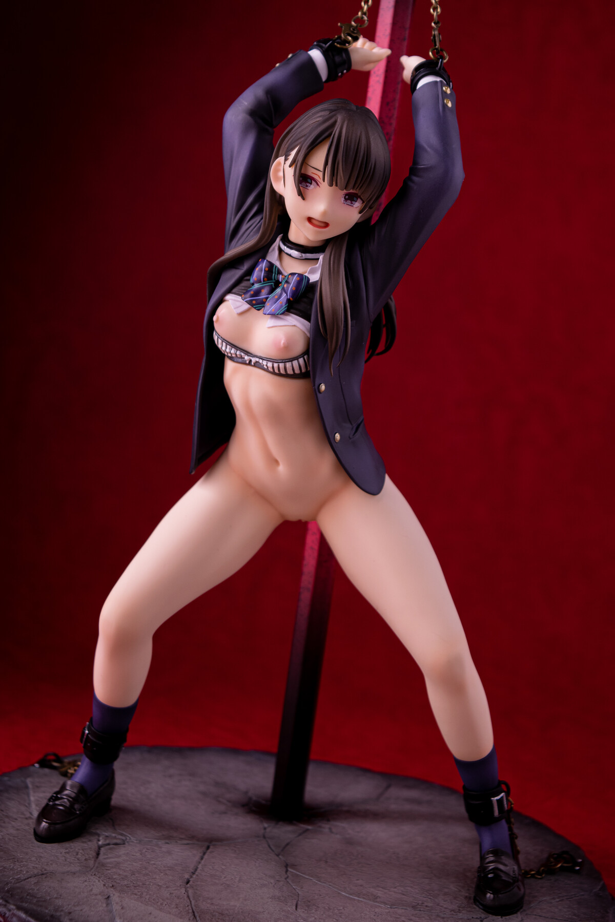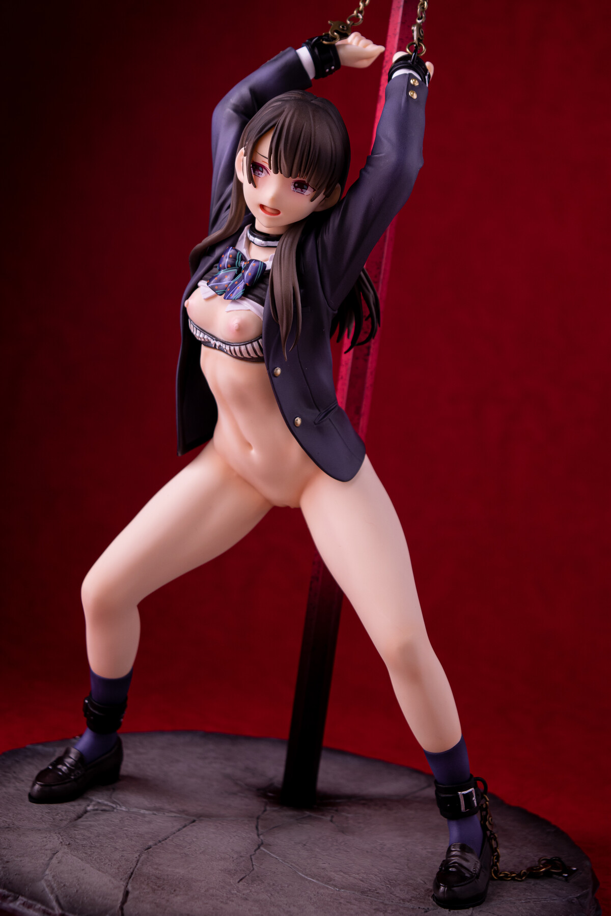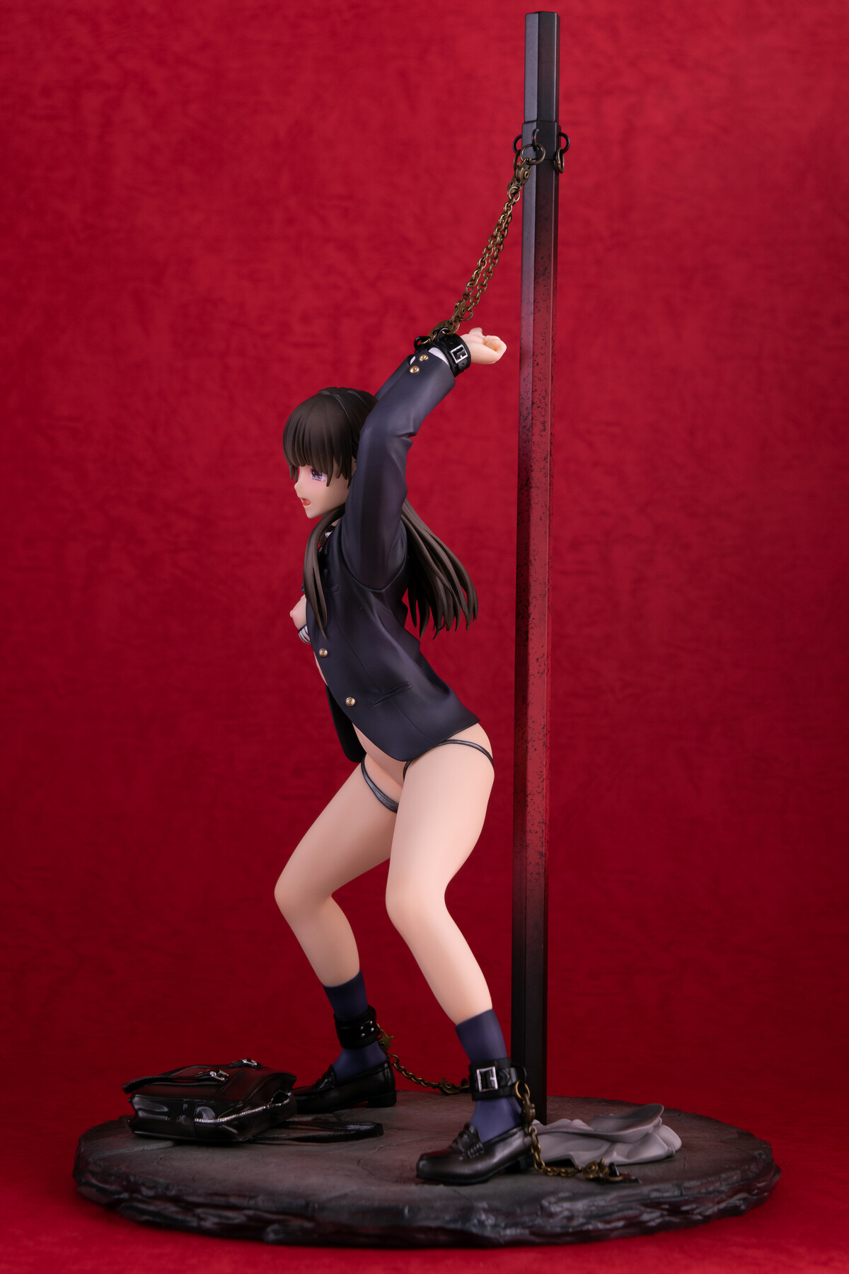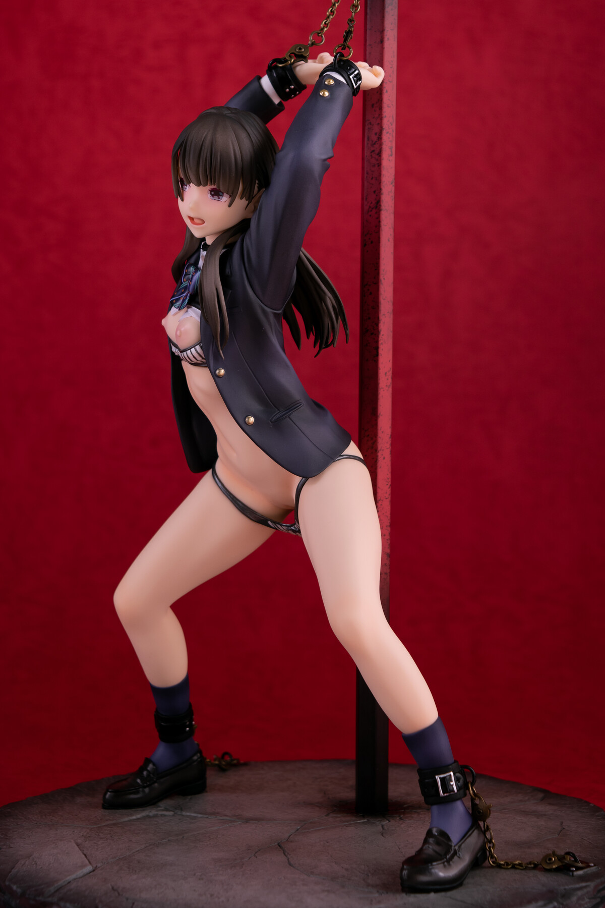 制服の少女が四肢を鎖で奪われているビジュアルから匂う不道徳的淫靡。