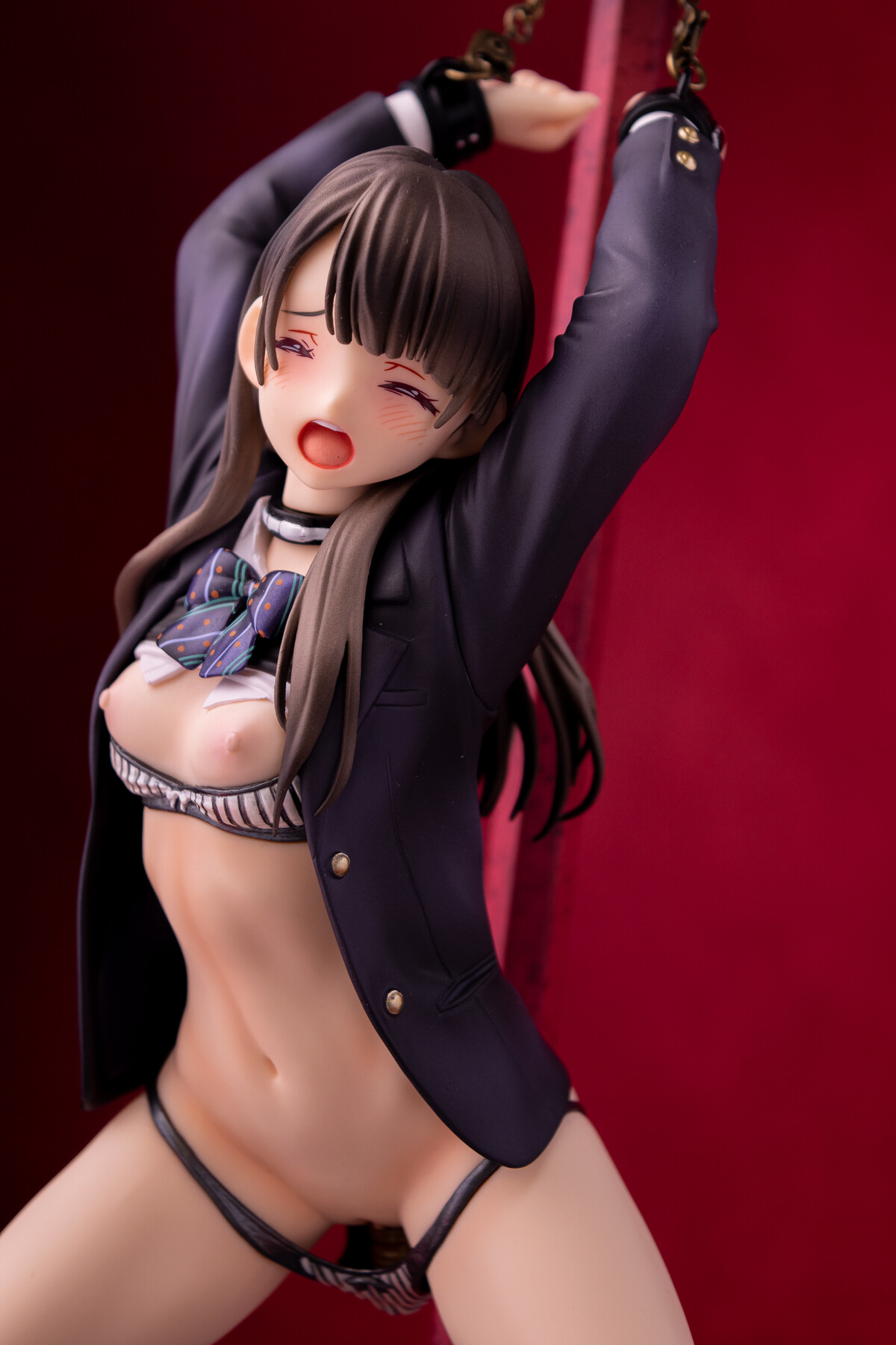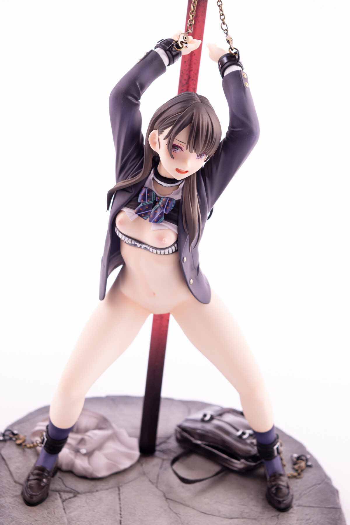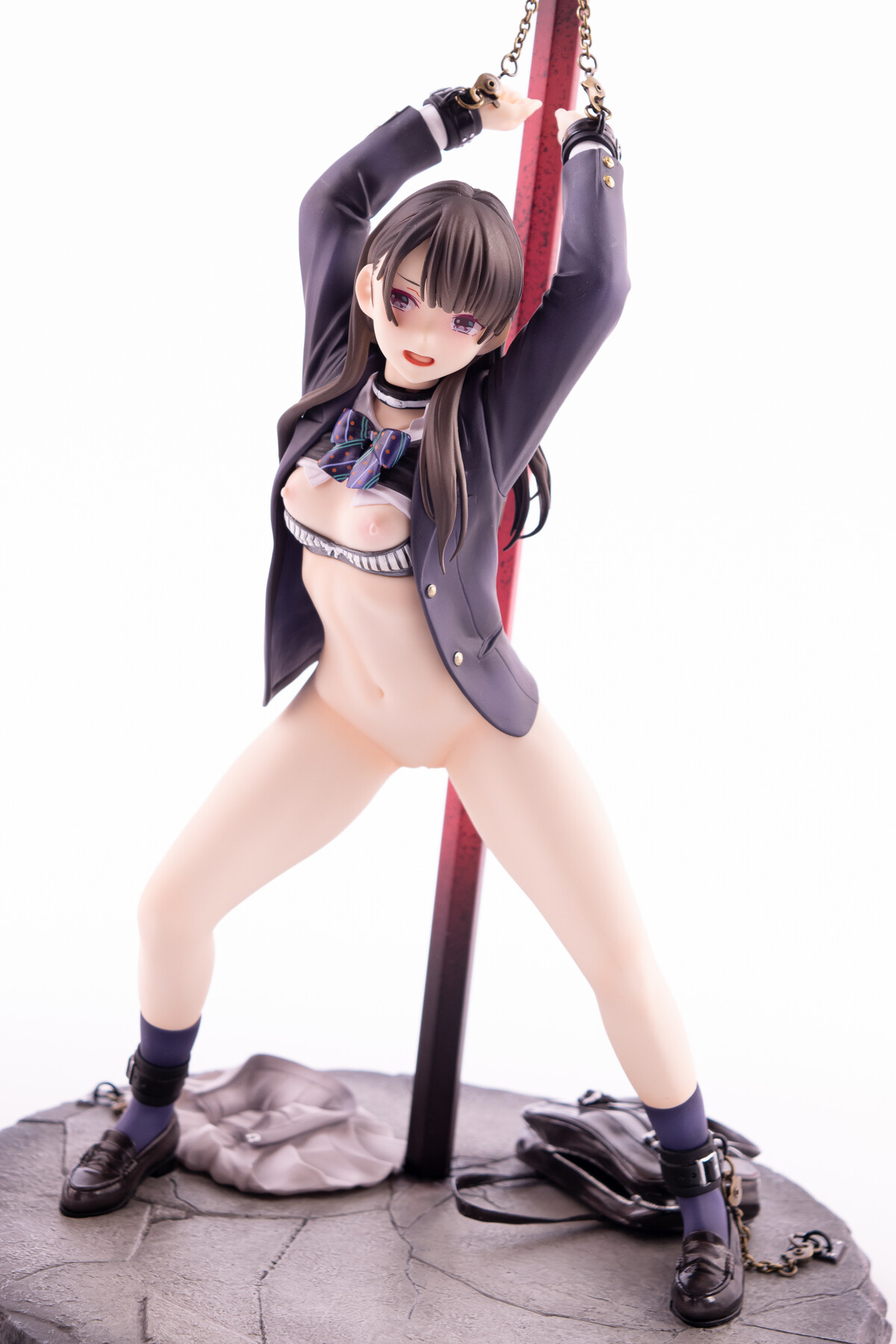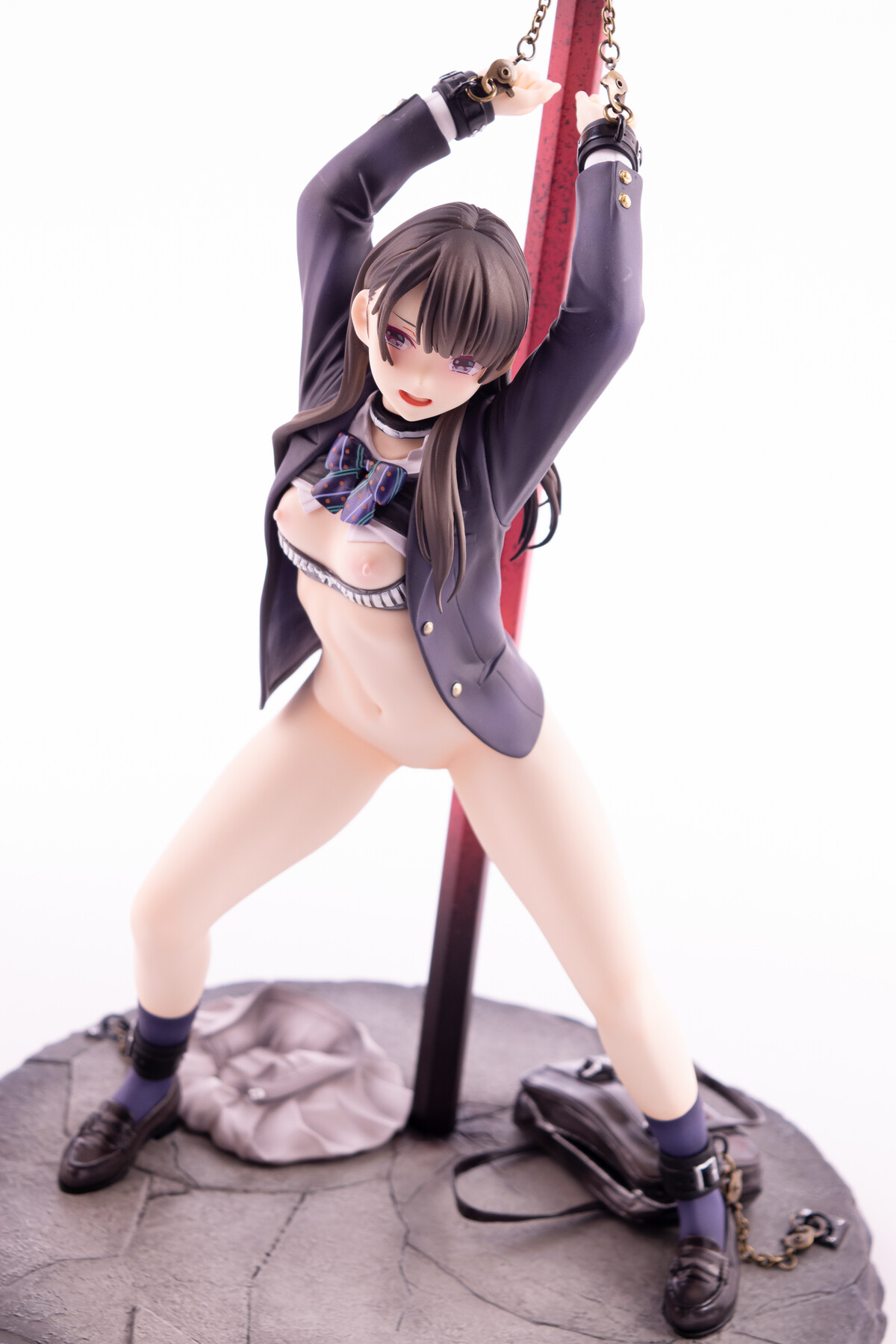 制服の少女が四肢を鎖で奪われているビジュアルから匂う不道徳的淫靡。