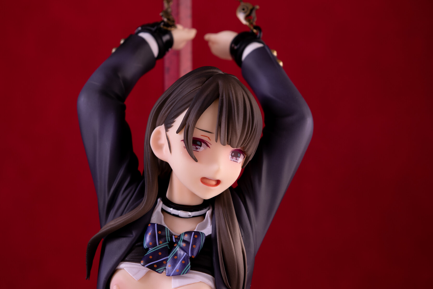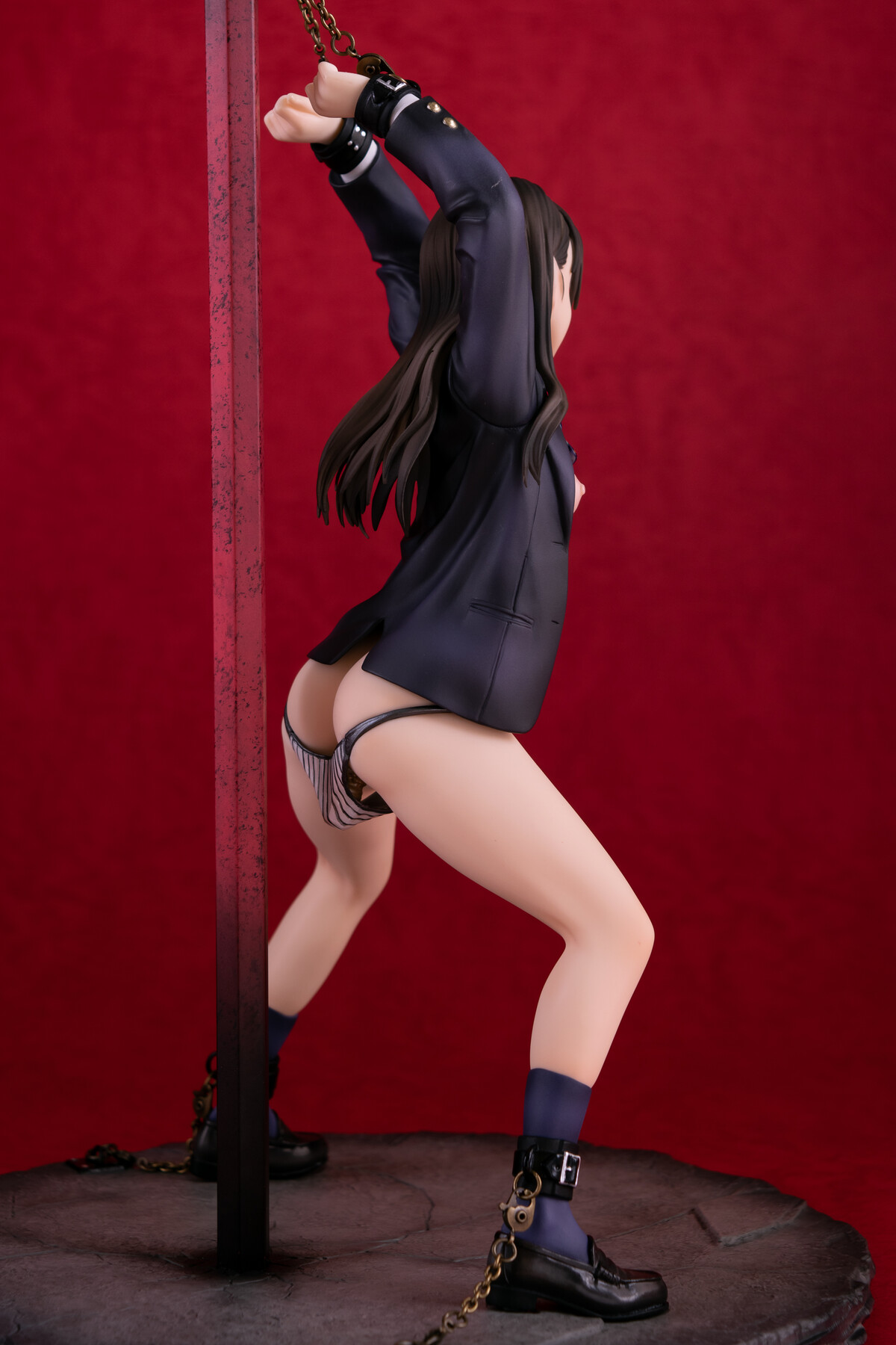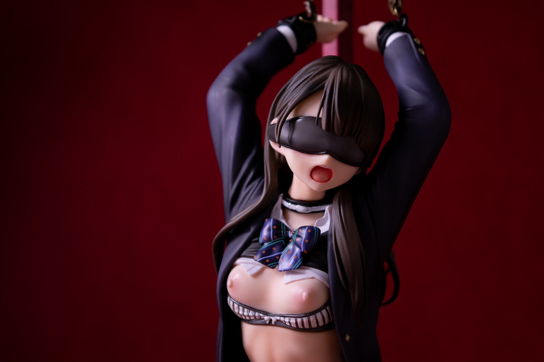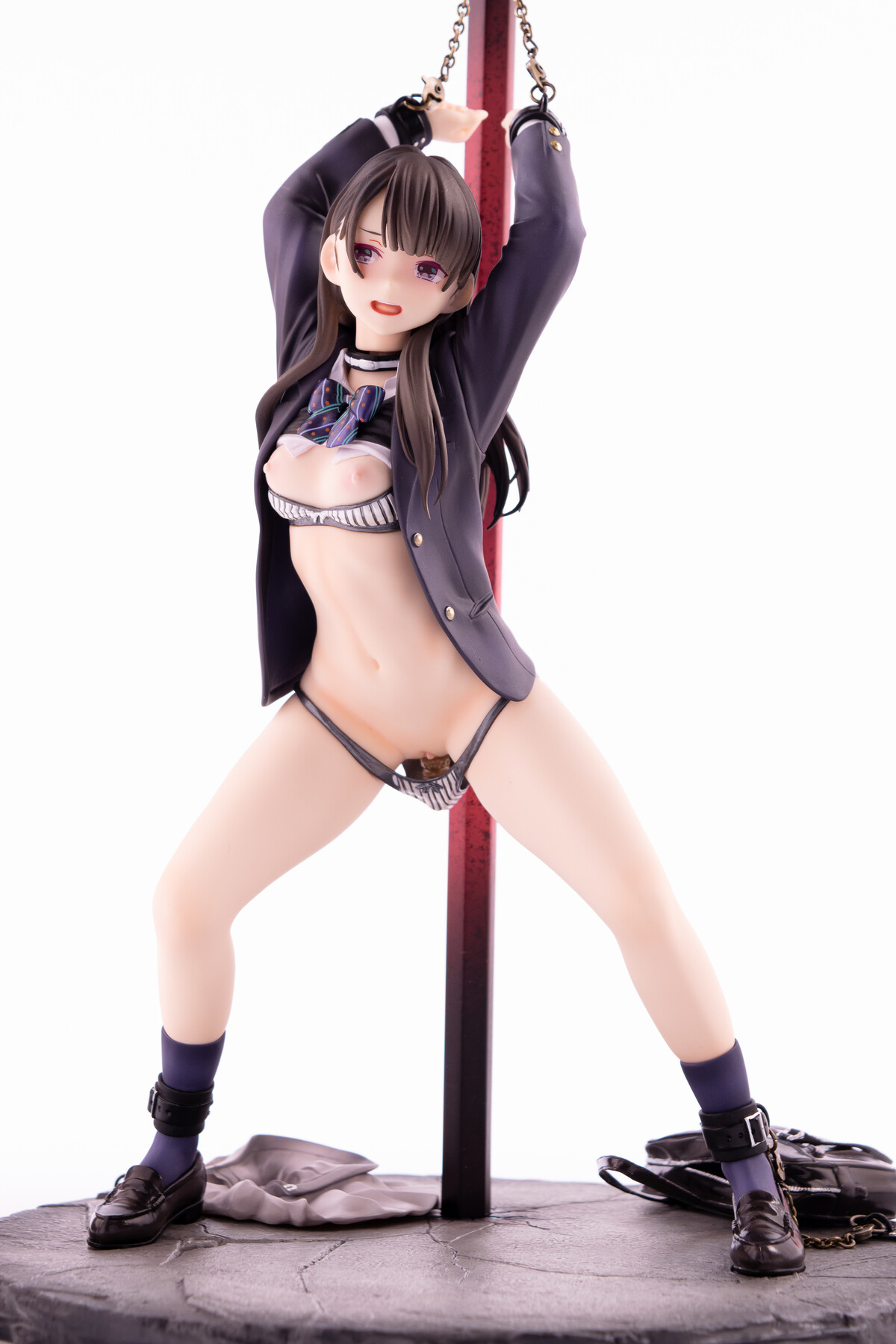 制服の少女が四肢を鎖で奪われているビジュアルから匂う不道徳的淫靡。